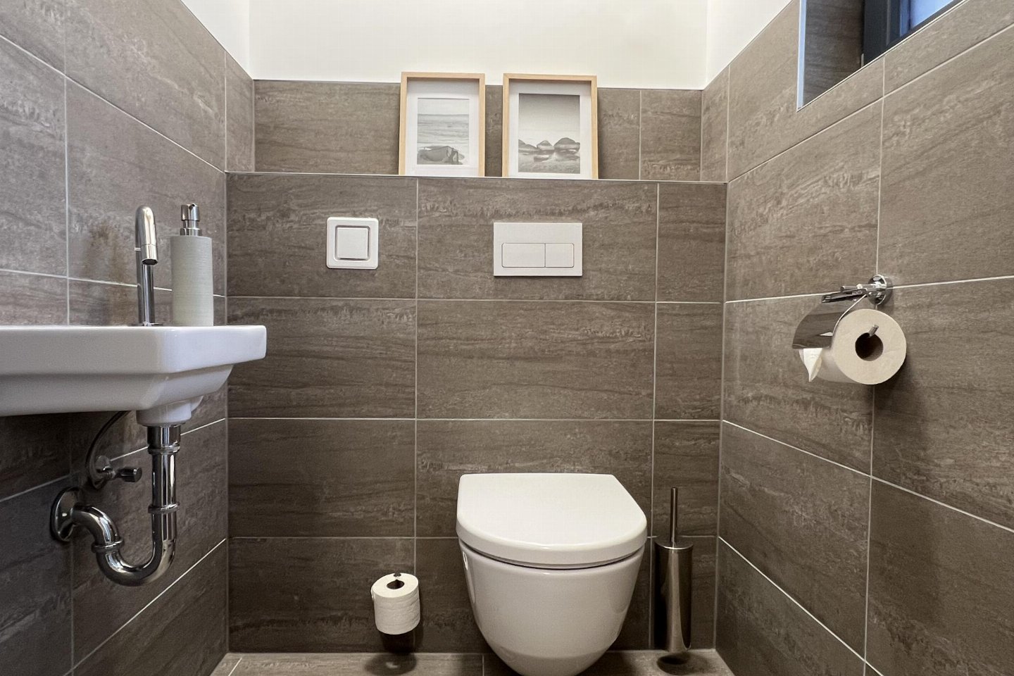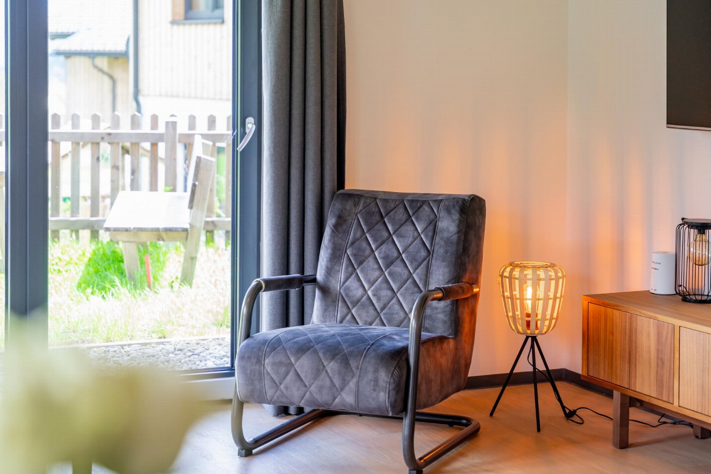 Begane grond: woonkamer met TV, eettafel(6 personen), zithoek , open keuken met kookplaat, waterkoker, afzuigkap, koffiezetapparaat(filtermaling), oven, afwasmachine, koel-/vriescombinatie , toilet met wastafel, wc , terras(privé)