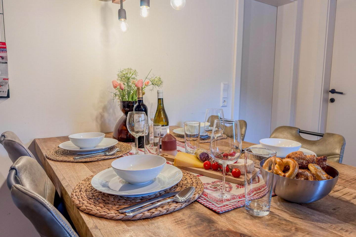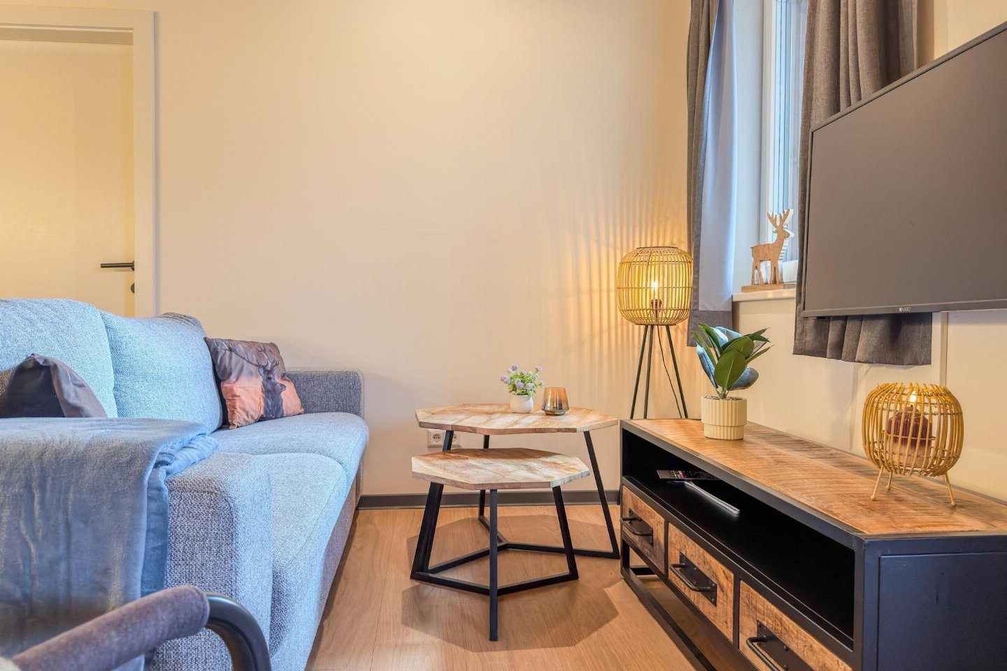 Op de 2e etage: woonkamer met TV, eettafel(4 personen), zithoek , open keuken met kookplaat, koffiezetapparaat(filtermaling), afwasmachine, koel-/vriescombinatie , 2x slaapkamer met 2-pers. bed , badkamer met douche, wastafel, wc , 2x balkon