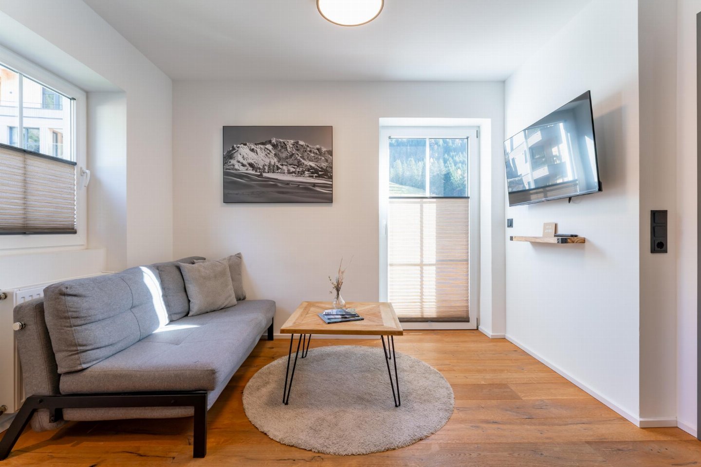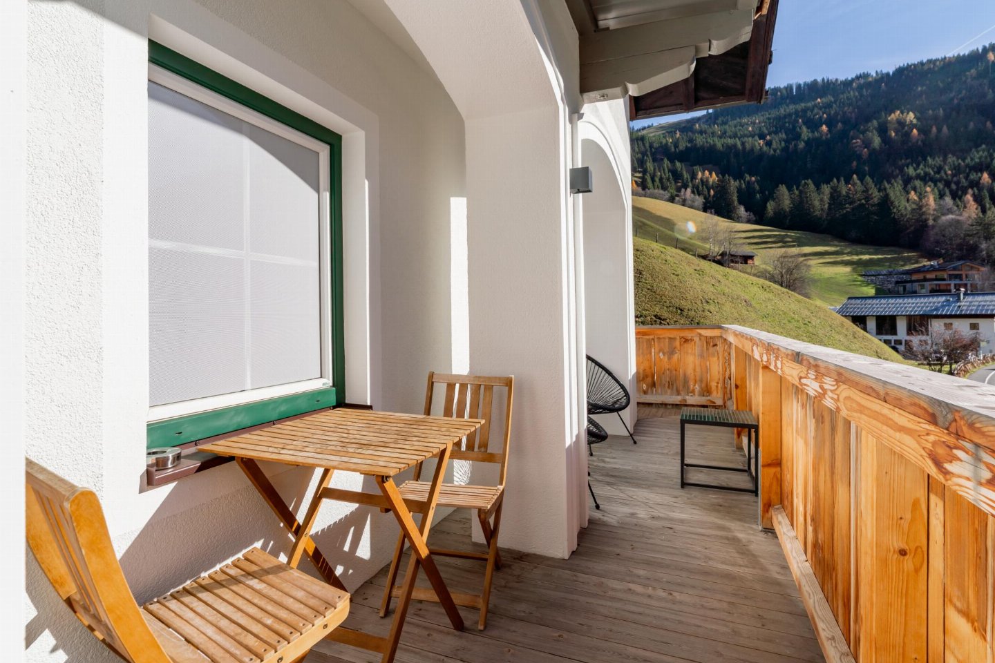 Aan de rand van het dorp Dienten staat dit vakantiehuis met in totaal 6 appartementen. Je bewoont het grotere appartement op de eerste etage dat plaats biedt aan zes personen, met een groot balkon aan de zonnige kant van het huis. Vanuit het gezellige Dienten vertrekken de skiliften naar verschillende kanten.