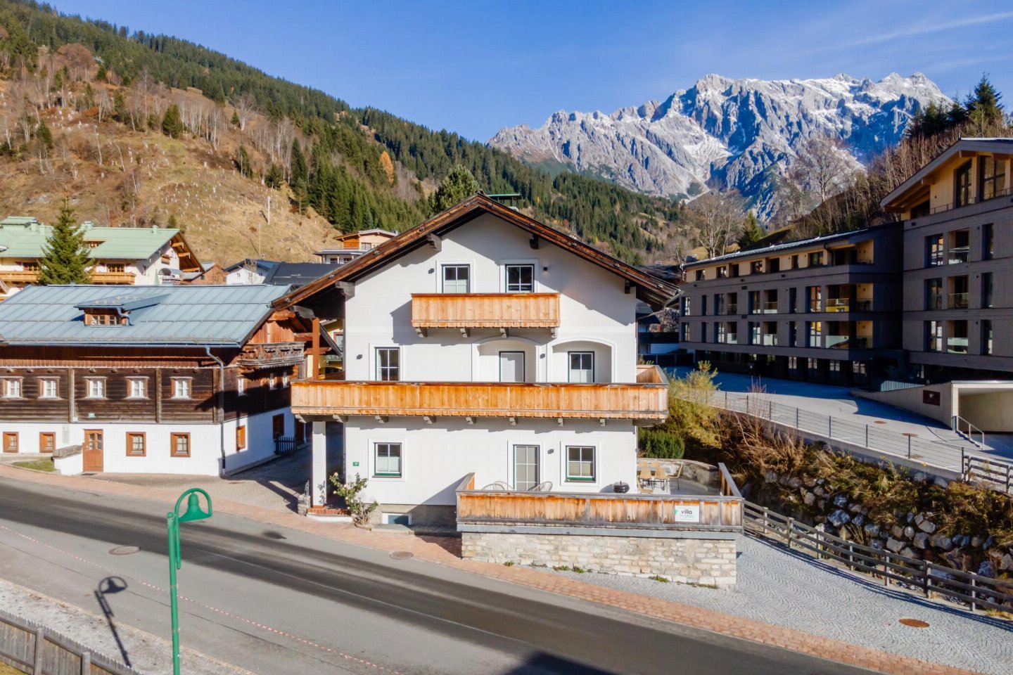 Je parkeert de auto voor de deur en de vakantie kan beginnen. Op loopafstand vind je diverse restaurants en een kleine supermarkt in het centrum. De skibus stopt bijna naast de deur, en vanuit het gezellige Dienten vertrekken de skiliften in verschillende richtingen. Dienten ligt middenin het Hochkönig skigebied, dat zich uitstrekt van Maria Alm tot aan Mühlbach. Voor de wintersporter die meer uitdaging zoekt, zijn populaire gebieden zoals Saalbach (40 km), Flauchau (35 km) en Bad Gastein (35 km) binnen een uur met de auto bereikbaar.