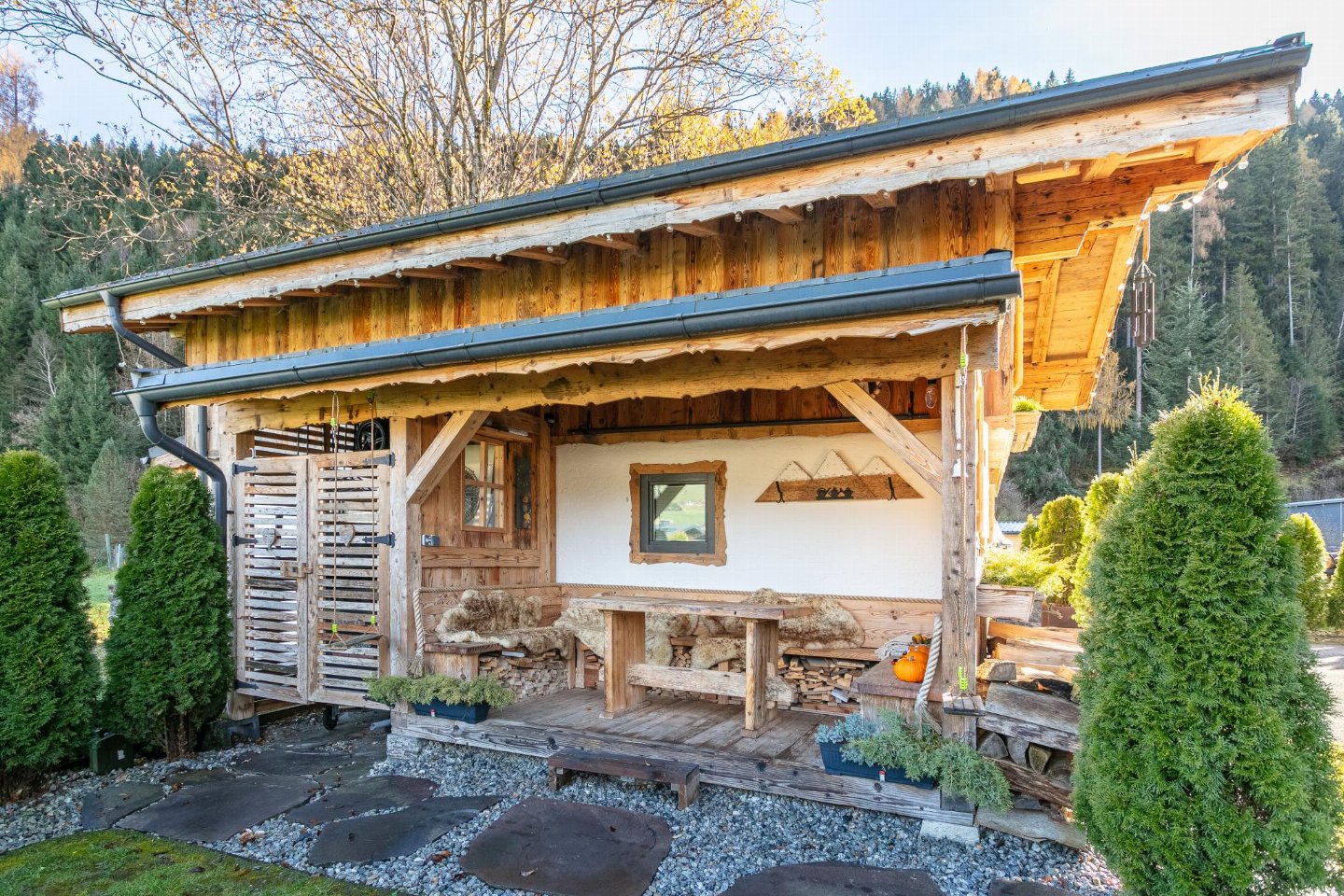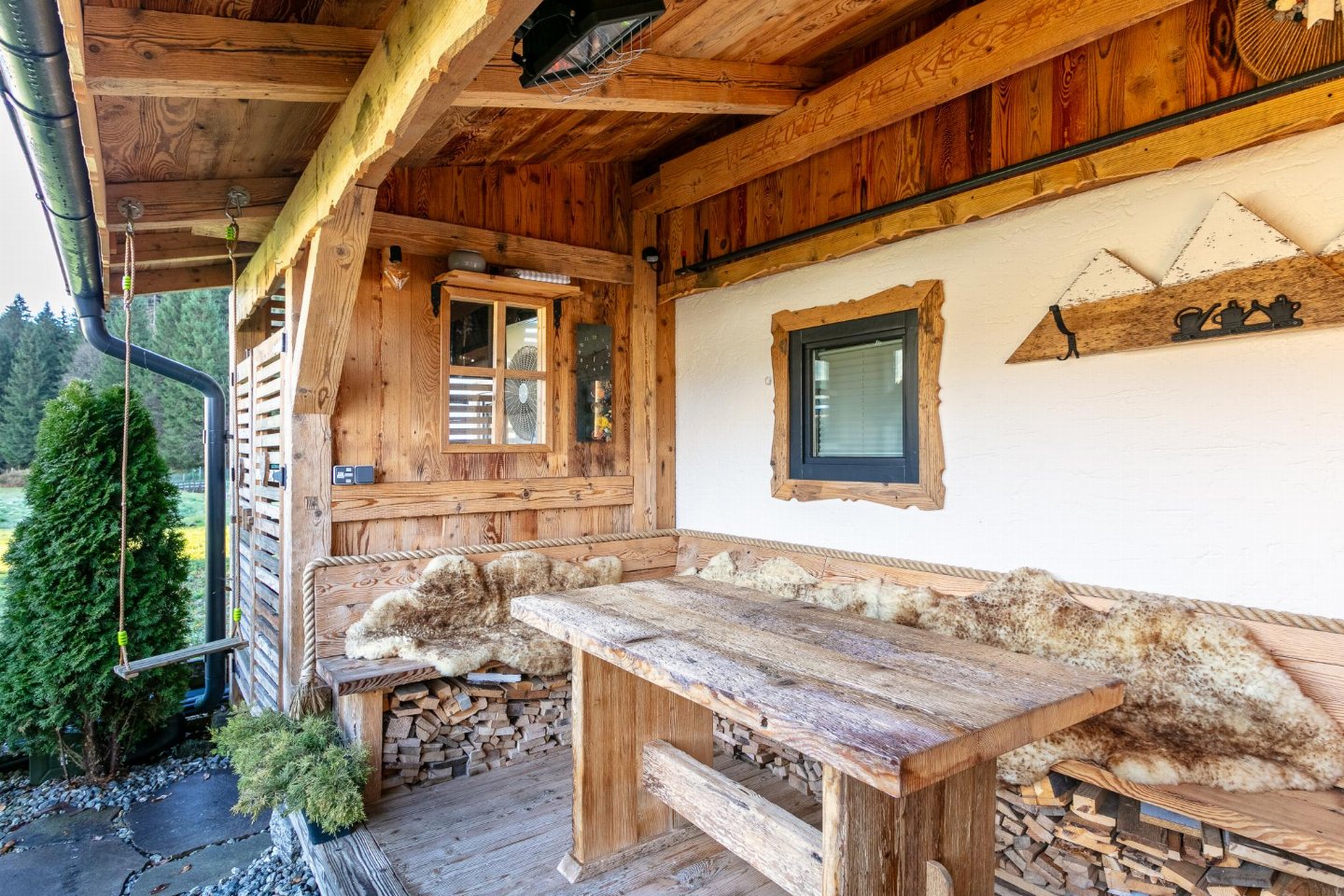 Een charmant chalet voor 7 personen - ideaal voor een stijlvolle vakantie in de bergen!. Het pension in alpine-rustieke stijl biedt ruimte voor maximaal 7 personen. Breng gezellige uren door in de gezellige woonkamer met zichtbare dakspanten. beddengoed), 1x kinderstoel, lounge set met eettafel, zithoek.