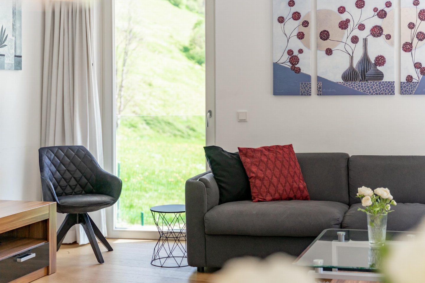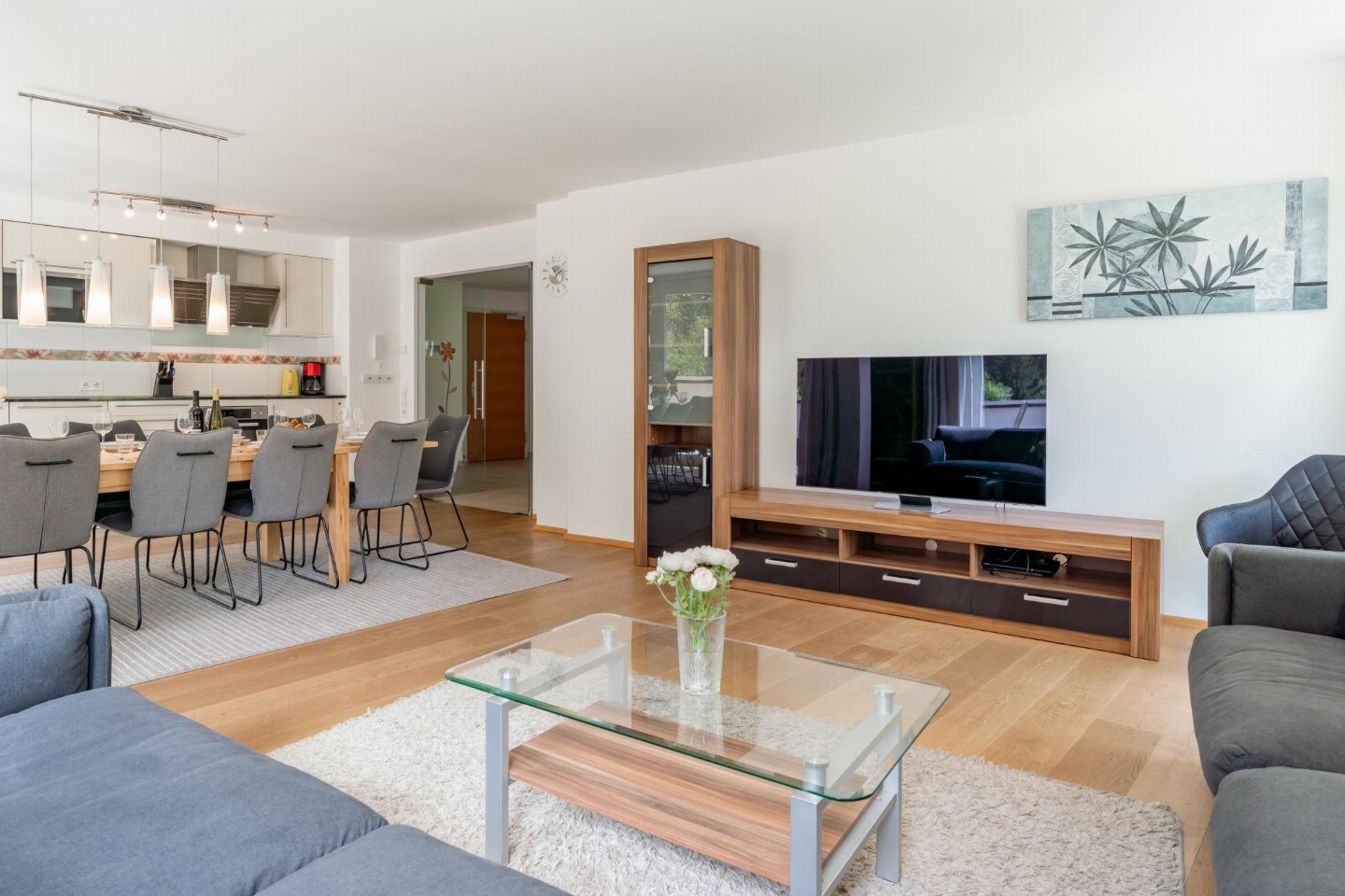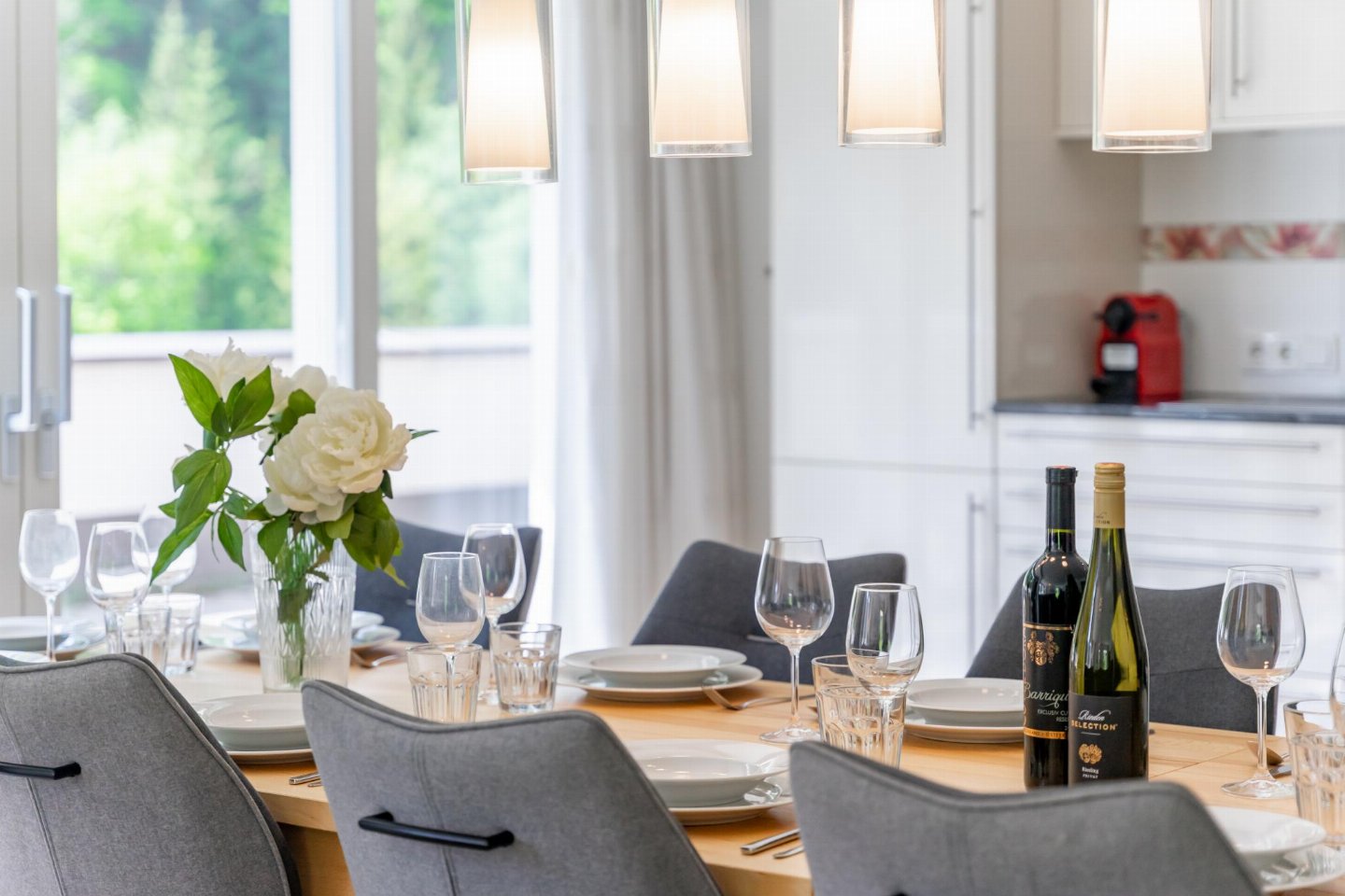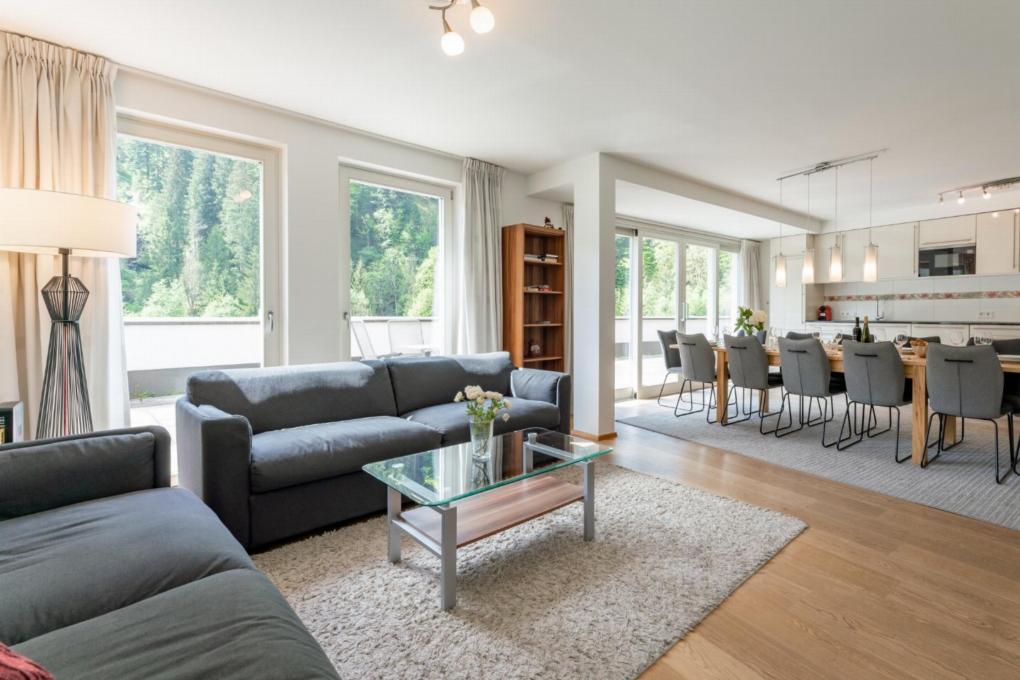 Wat een prachtig appartement op een fantastische locatie. Direct aan de nieuwe gondelbaan naar Zell am See, centraal in het dorp en naast de oefenweide van de skischool ligt deze luxueuze vakantiewoning. In de overdekte parkeergarage kunnen twee auto's staan, waarna je met de lift naar het appartement kunt. Het grote terras over de gehele breedte van het appartement wordt door de grote raampartijen bij de woonkamer betrokken. Een mooie ruime en lichte leefruimte