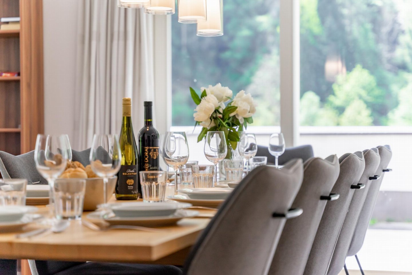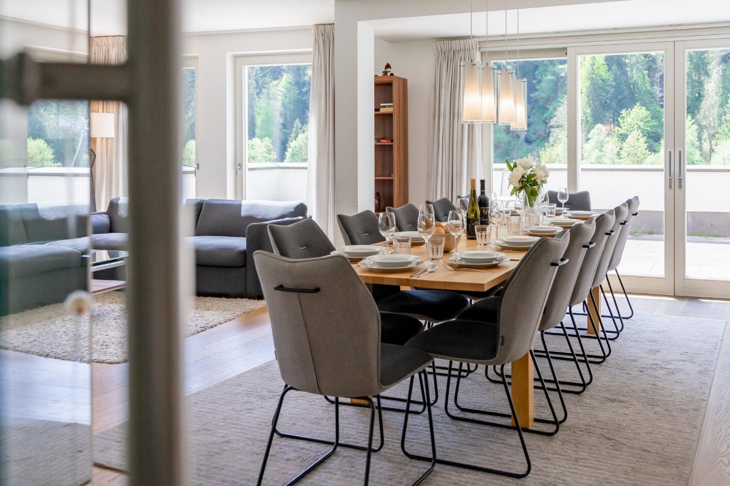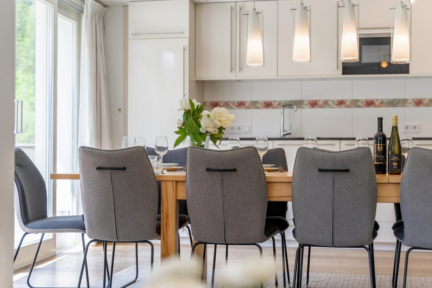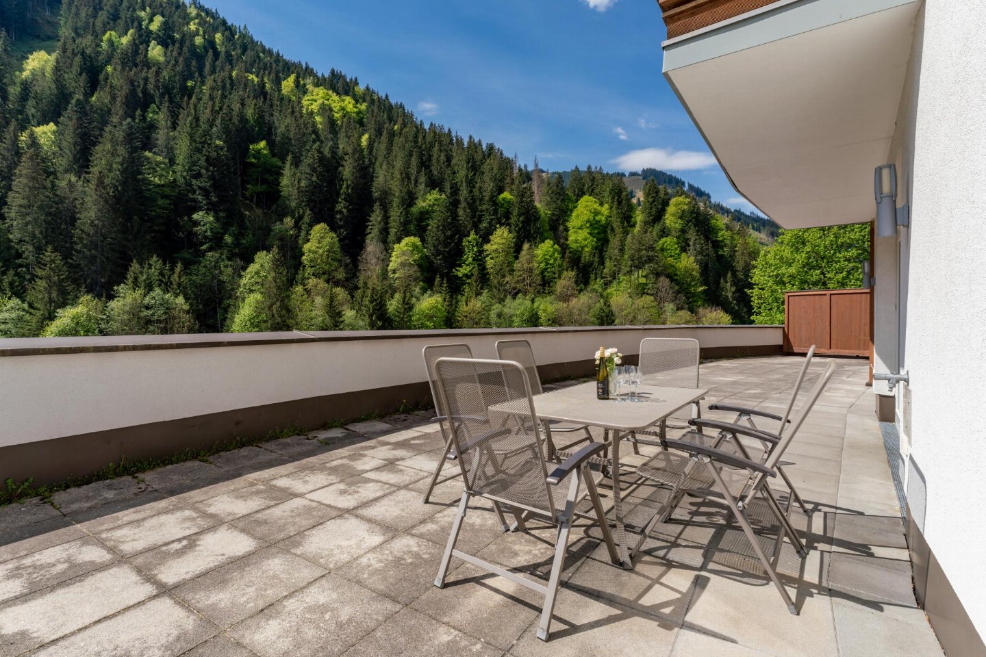 Wat een prachtig appartement op een fantastische locatie. Direct aan de nieuwe gondelbaan naar Zell am See, centraal in het dorp en naast de oefenweide van de skischool ligt deze luxueuze vakantiewoning. In de overdekte parkeergarage kunnen twee auto's staan, waarna je met de lift naar het appartement kunt. Het grote terras over de gehele breedte van het appartement wordt door de grote raampartijen bij de woonkamer betrokken. Een mooie ruime en lichte leefruimte