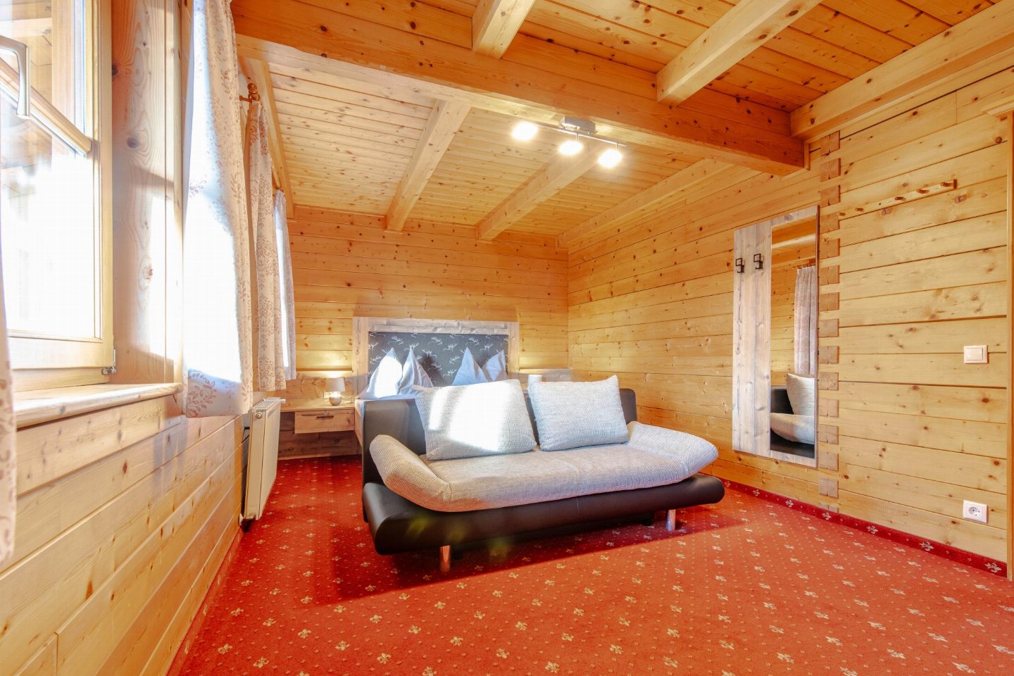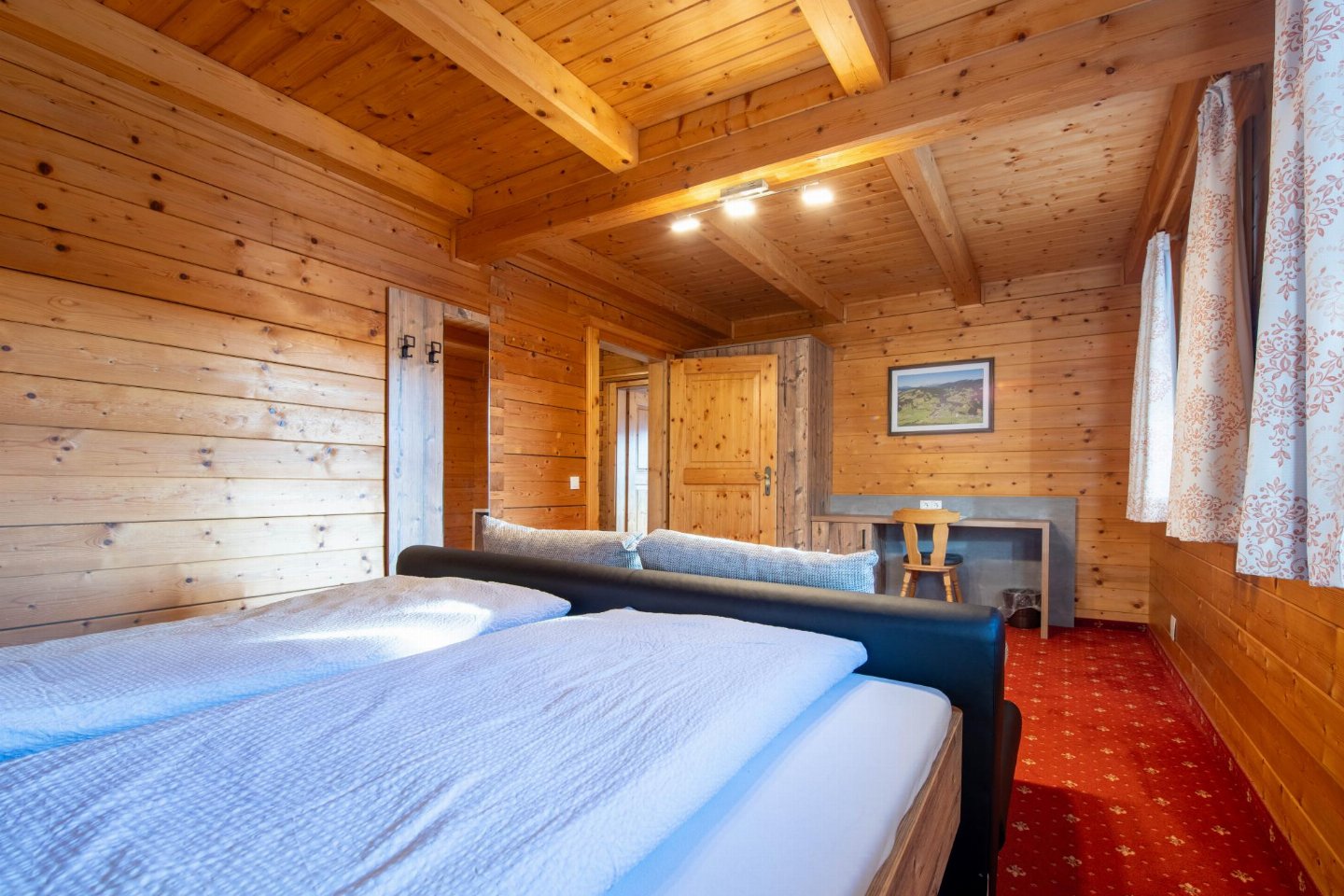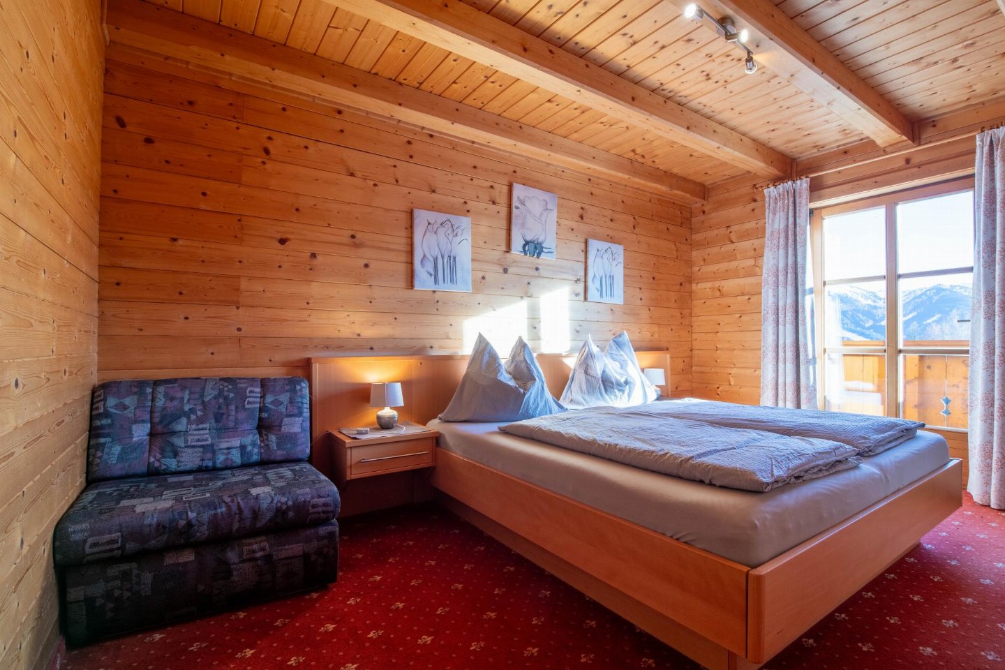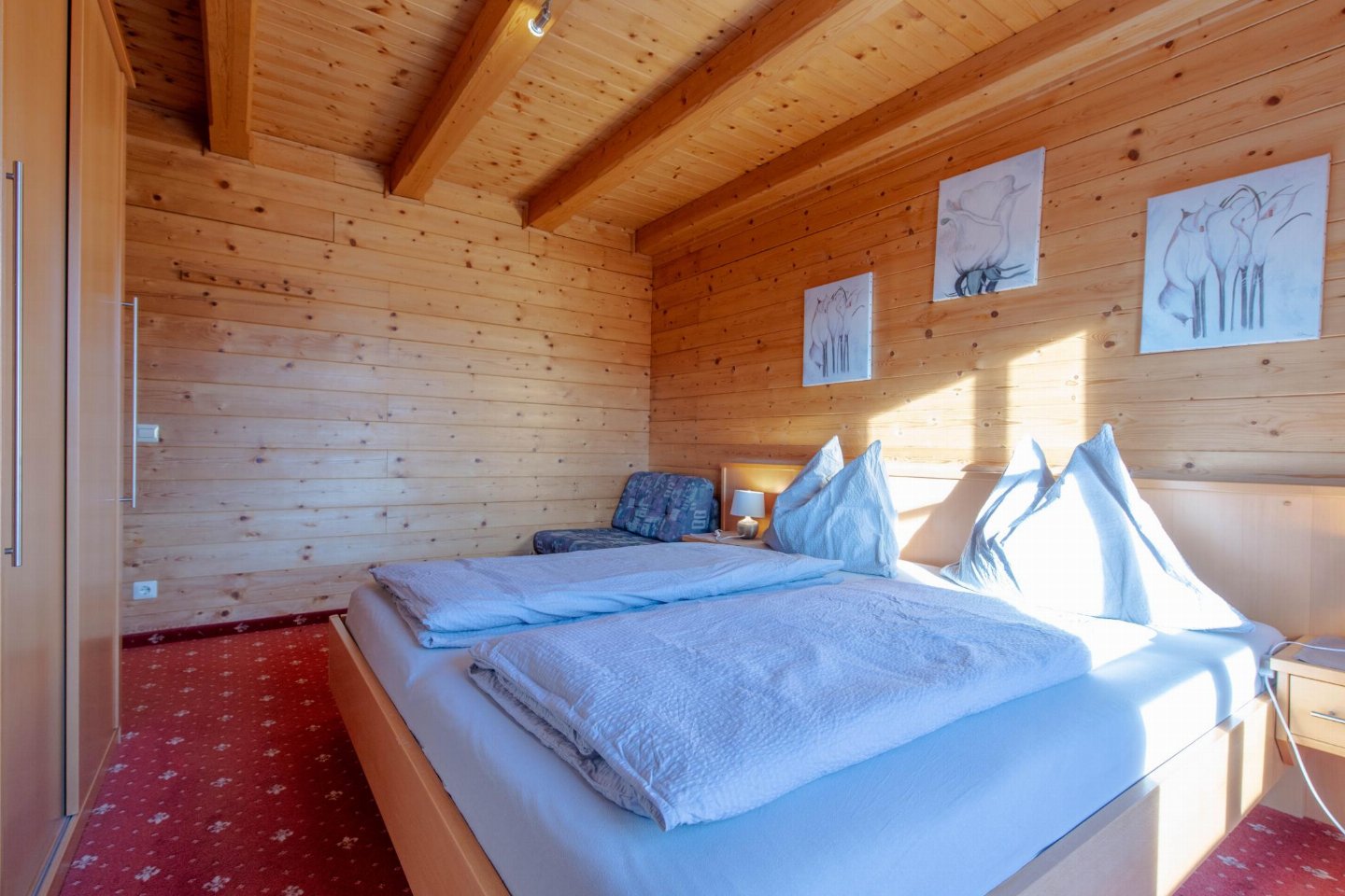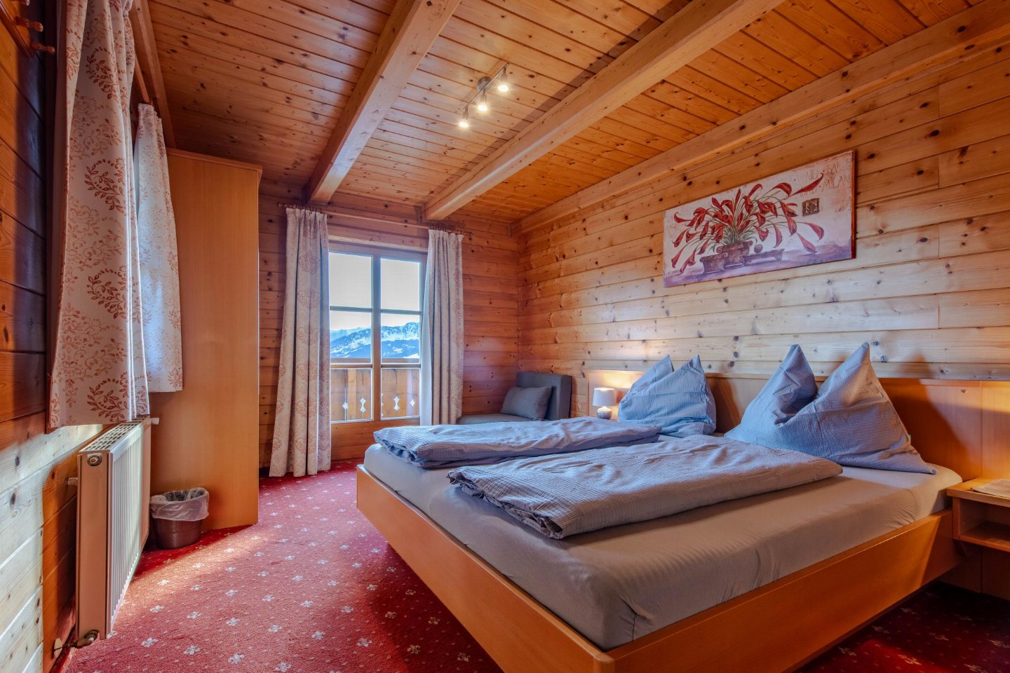 Boven Wagrain, aan de rand van een traditionele berghoeve, ligt dit sfeervolle vakantieappartement in een rustige omgeving met een weids uitzicht op bossen en bergen. De warm ingerichte ruimtes en het balkon met mooi zicht over het dal zorgen voor een ontspannen sfeer. bed(180 x 200 cm) , slaapkamer met 2-pers.