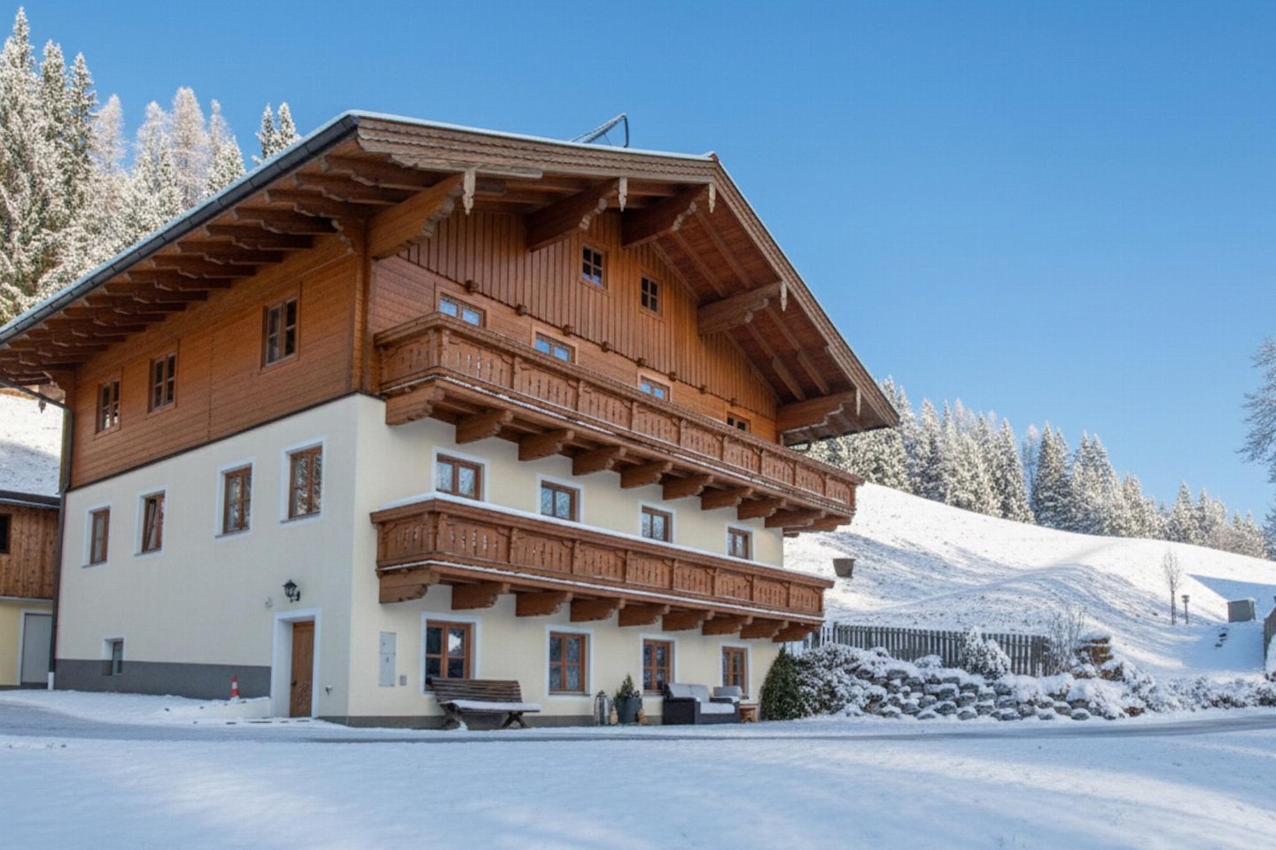 Boven Wagrain, aan de rand van een traditionele berghoeve, ligt dit sfeervolle vakantieappartement in een rustige omgeving met een weids uitzicht op bossen en bergen. De warm ingerichte ruimtes en het balkon met mooi zicht over het dal zorgen voor een ontspannen sfeer. Op de zonnige ligweide vind je een heerlijke plek om tot rust te komen. Hier beleef je natuurrijke dagen met de charme van het bergleven