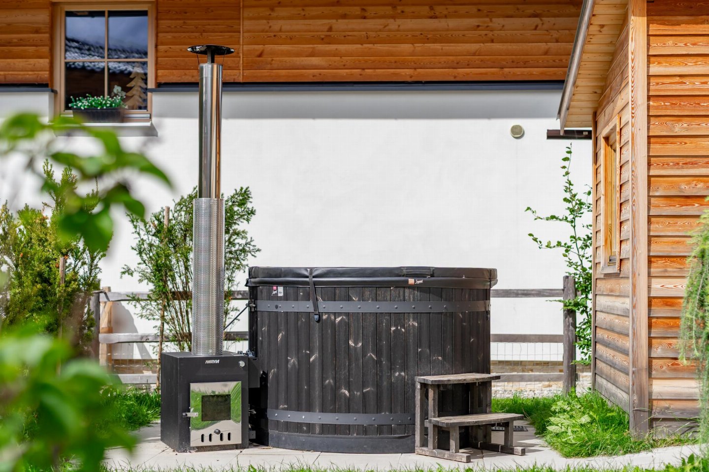 Extra\'s: hottub (tegen betaling, verwarmd door vuur), verwarming (CV), 3 terrassen, tuin, tuinmeubilair, BBQ, 2 parkeerplaatsen, 2 ligstoelen, parasol, 1 kinderbed (excl. beddengoed), 1 kinderstoel, oplaadmogelijkheid voor elektrische auto\'s.