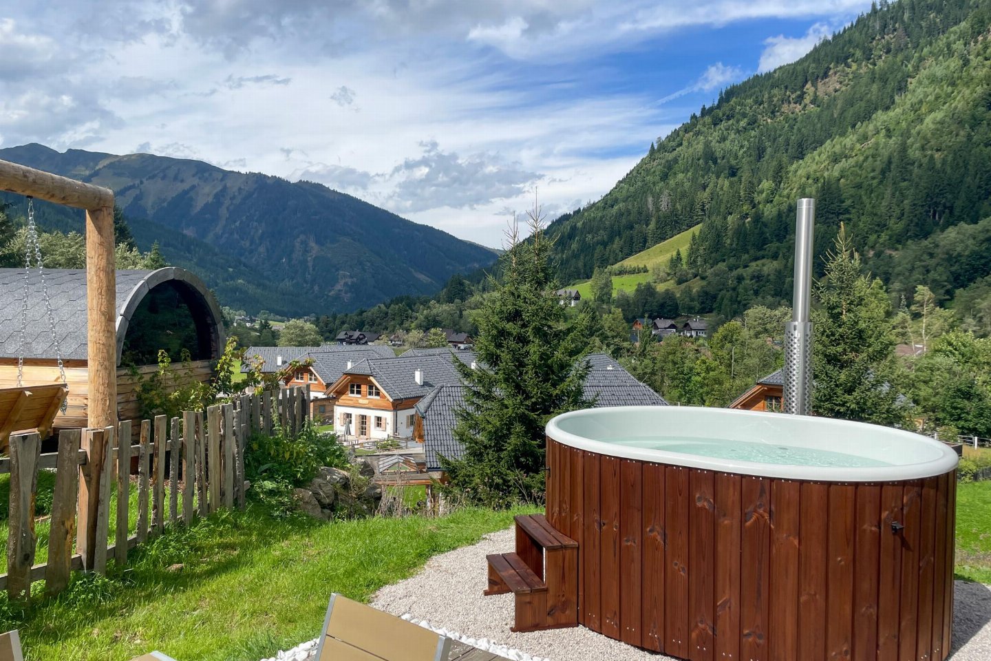 Een groot voordeel van Donnersbachtal is haar ligging in de Oostenrijkse deelstaat Steiermark, niet ver van Salzburgerland. Je passeert de grensovergang bij Passau en ontwijkt zo München, waardoor je zelfs in het hoogseizoen filevrij naar je vakantie kunt rijden! Het verblijf in Donnersbachwald ligt op een glooiende helling met een adembenemend uitzicht. Met haar fantastische ligging nabij het dalstation van de Riesneralm, biedt het park directe toegang tot de natuur en een kabbelende beek.