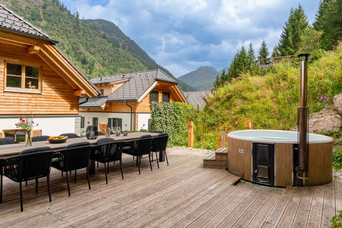 Verblijf in dit vrijstaande chalet op een kleinschalig park dat volledig in harmonie is met de typisch Oostenrijkse omgeving. Dankzij de extra 2-persoons studio met pantry en eetkamer is het ideaal voor 12 personen. Het verblijf is voorzien van 4 parkeerplaatsen (1 in de garage), een hottub, grillhut in de tuin, een ruime woonkamer met haard, moderne open keuken, een balkon en twee terrassen. De wellnessruimte met Finse sauna, dubbele douche en tweepersoons ligbad vormt de kers op de taart!