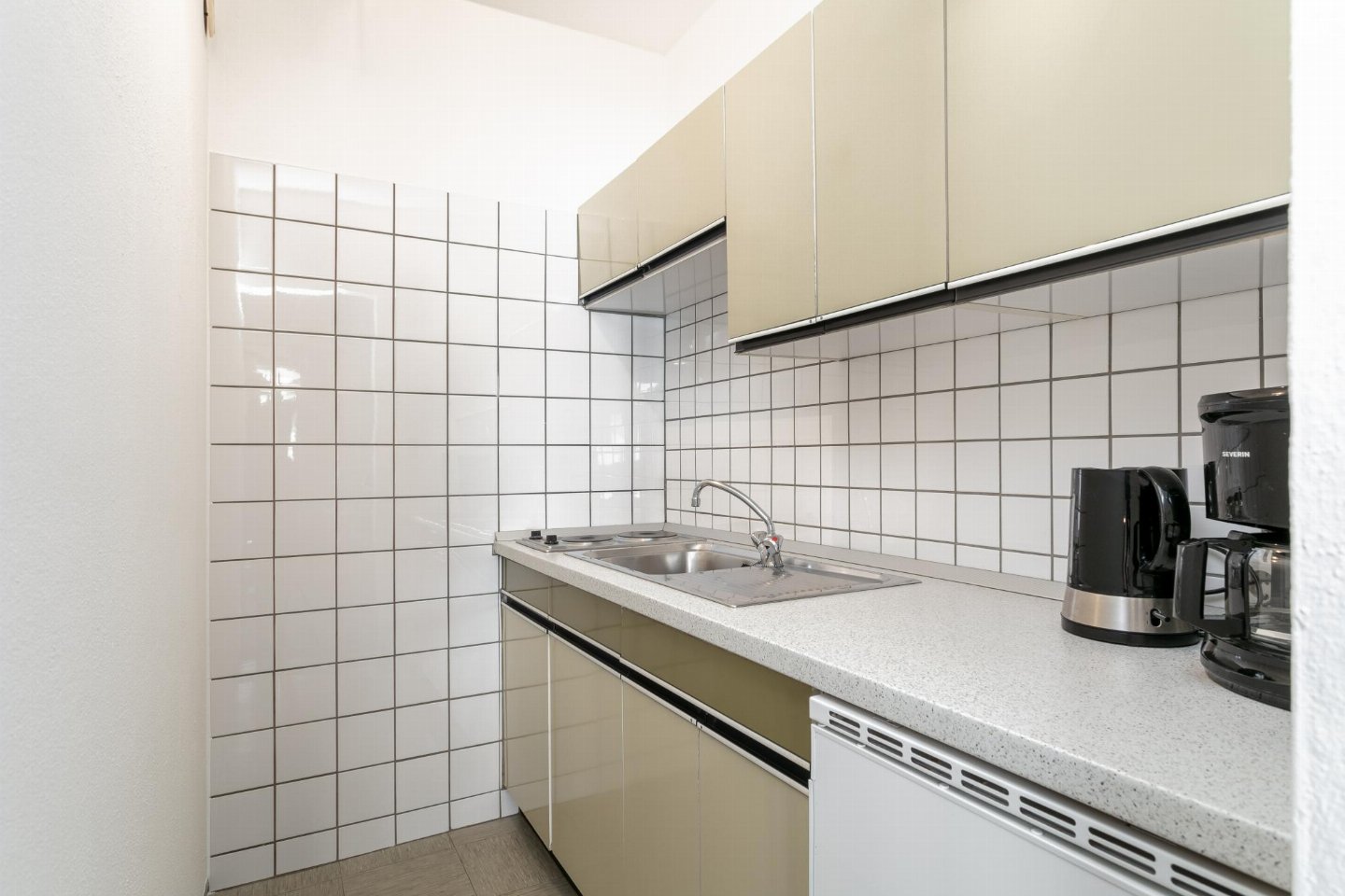 Op de 3e etage: open keuken met waterkoker, fornuis(2 kookplaten), koffiezetapparaat(filtermaling), koelkast( vriesvak) , slaapkamer met 2-pers. bed(180 x 200 cm), TV(flatscreen), eettafel(2 personen) , badkamer met bad met douche, wastafel, wc, haardroger
