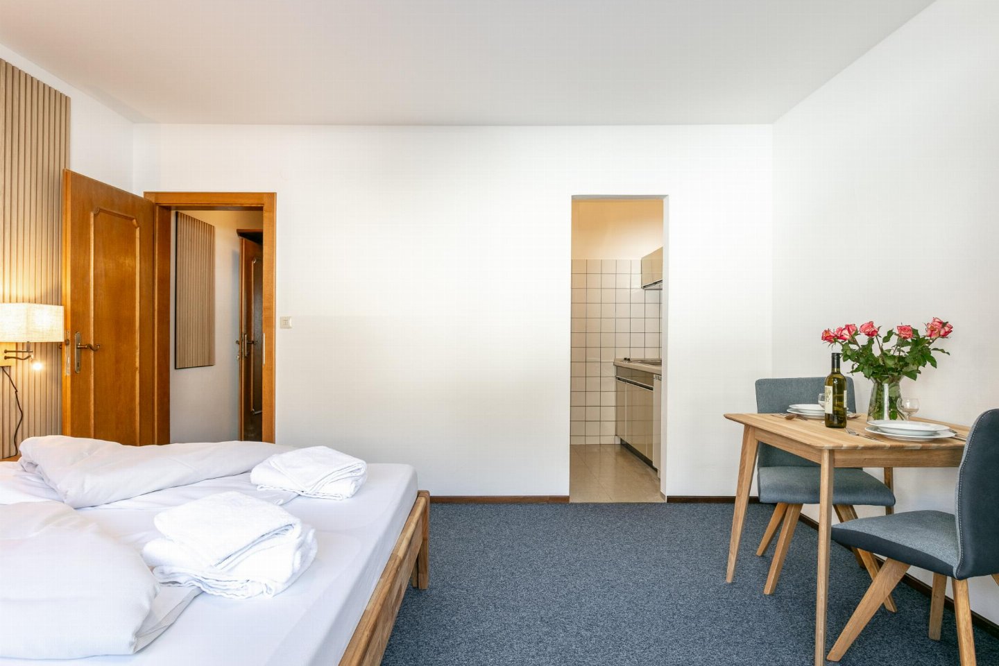 Geniet van een ontspannen vakantie in dit charmante appartement voor twee personen. Deze vakantiewoning biedt een comfortabele inrichting met een volledig uitgeruste kitchenette, een ruime slaapkamer, badkamer en balkon met prachtig uitzicht op de bergen.