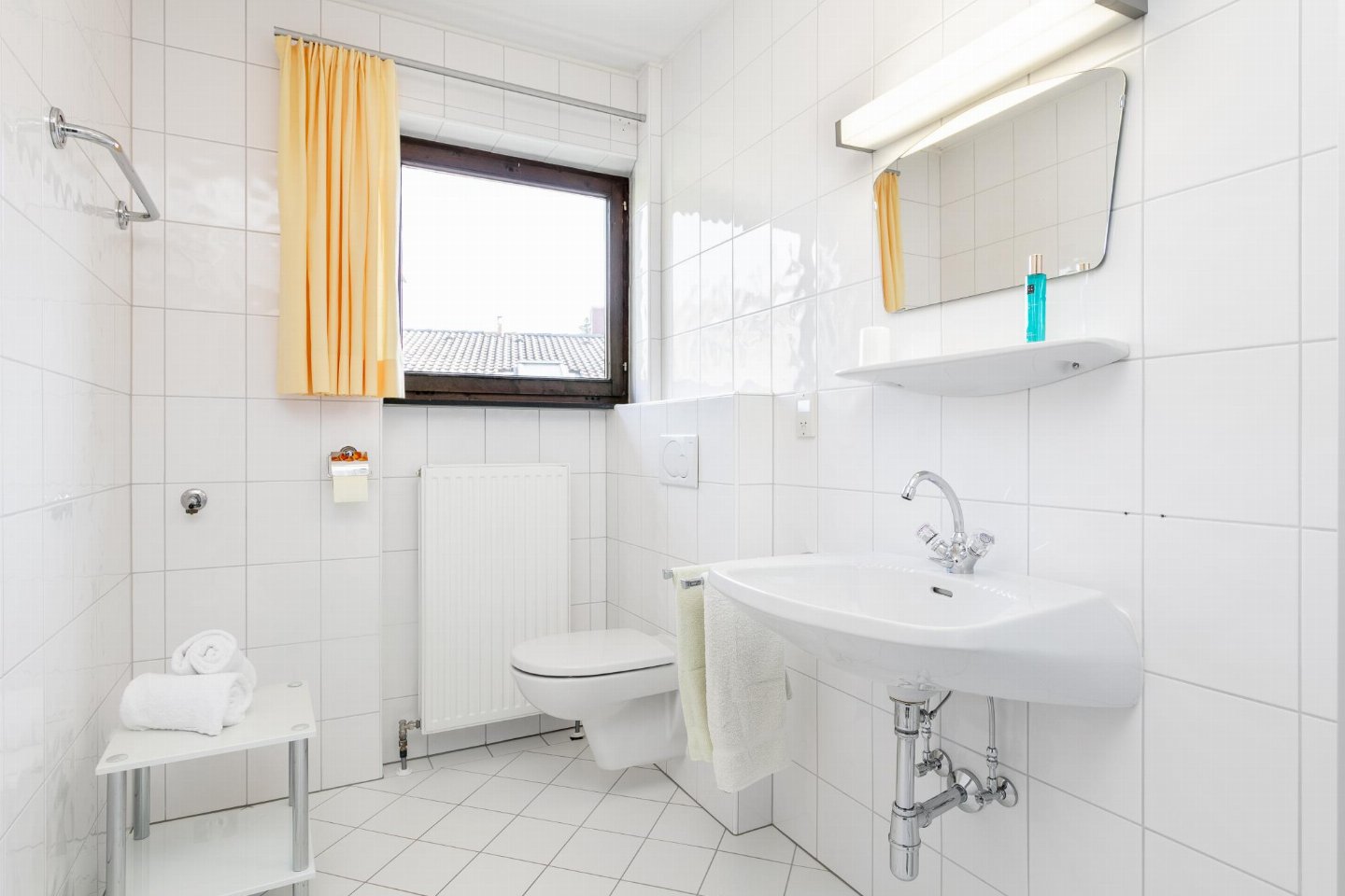 Op de 3e etage: open keuken met waterkoker, fornuis(2 kookplaten), koffiezetapparaat(filtermaling), koelkast( vriesvak) , slaapkamer met 2-pers. bed(180 x 200 cm), TV(flatscreen), eettafel(2 personen) , badkamer met bad met douche, wastafel, wc, haardroger