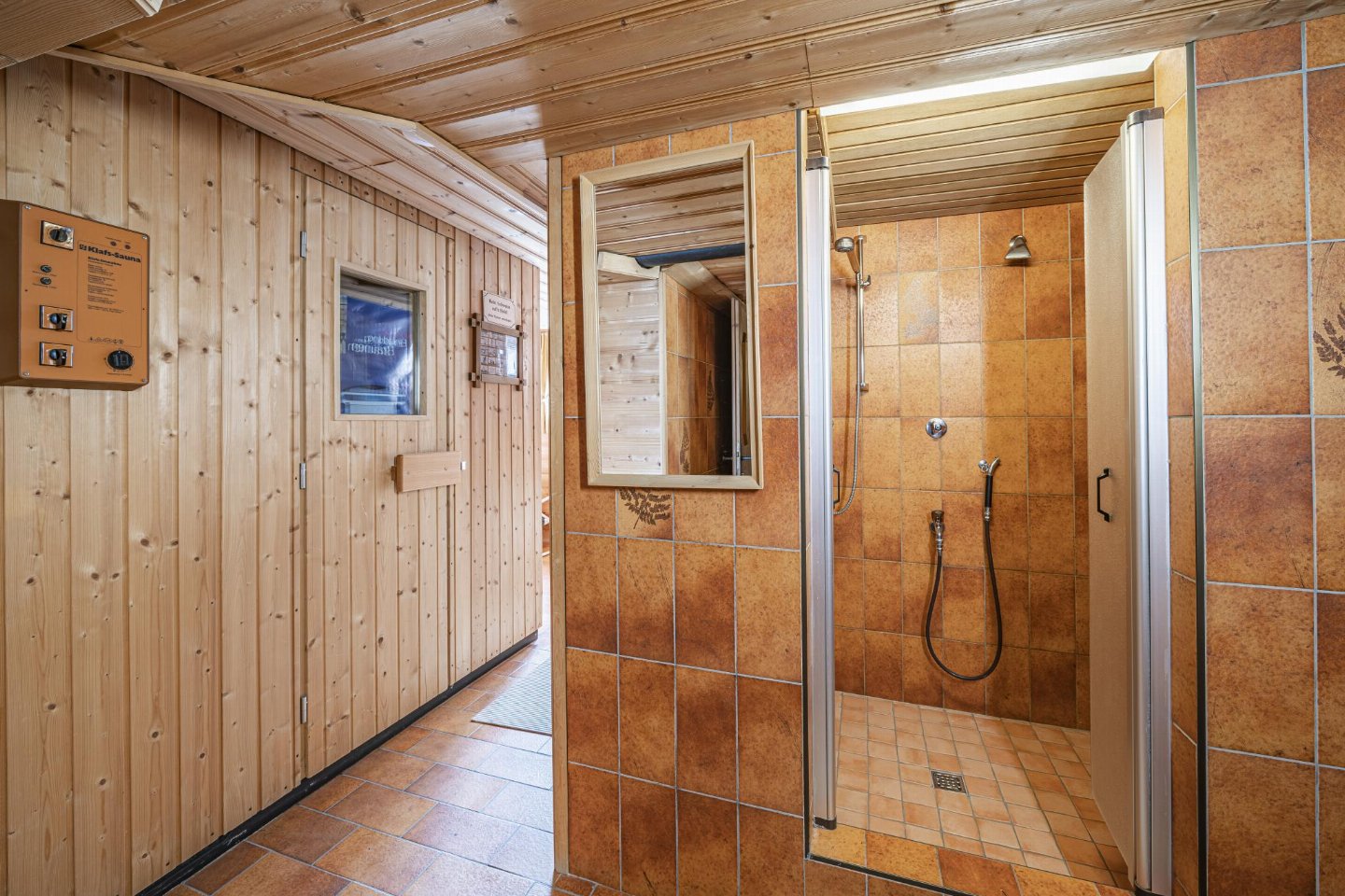 Souterrain: (slaapkamer met badkamer (2-pers. bed, 2-pers. slaapbank, TV, douche, wastafel, wc), wasruimte (wasdroger, wasmachine), speelkamer (speelgoed), saunaruimte (douche, wc, 2x ligstoelen), skiberging)