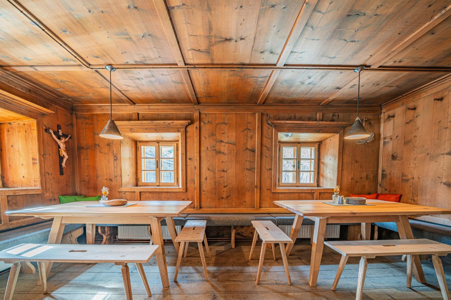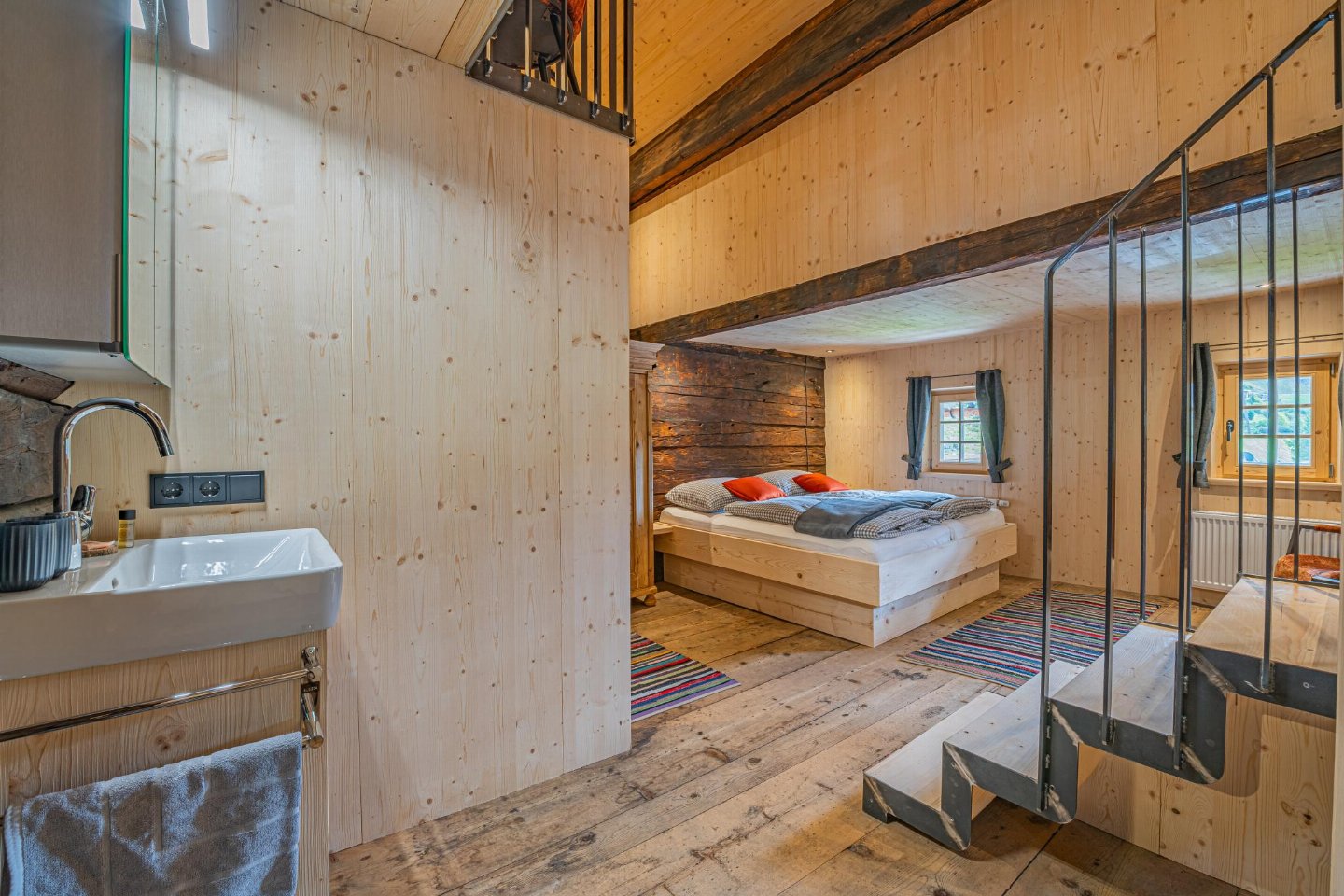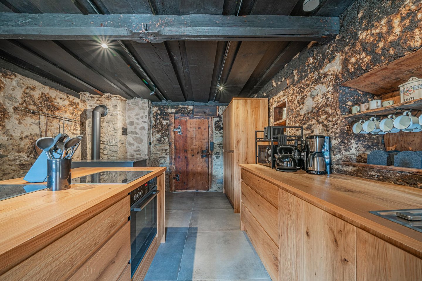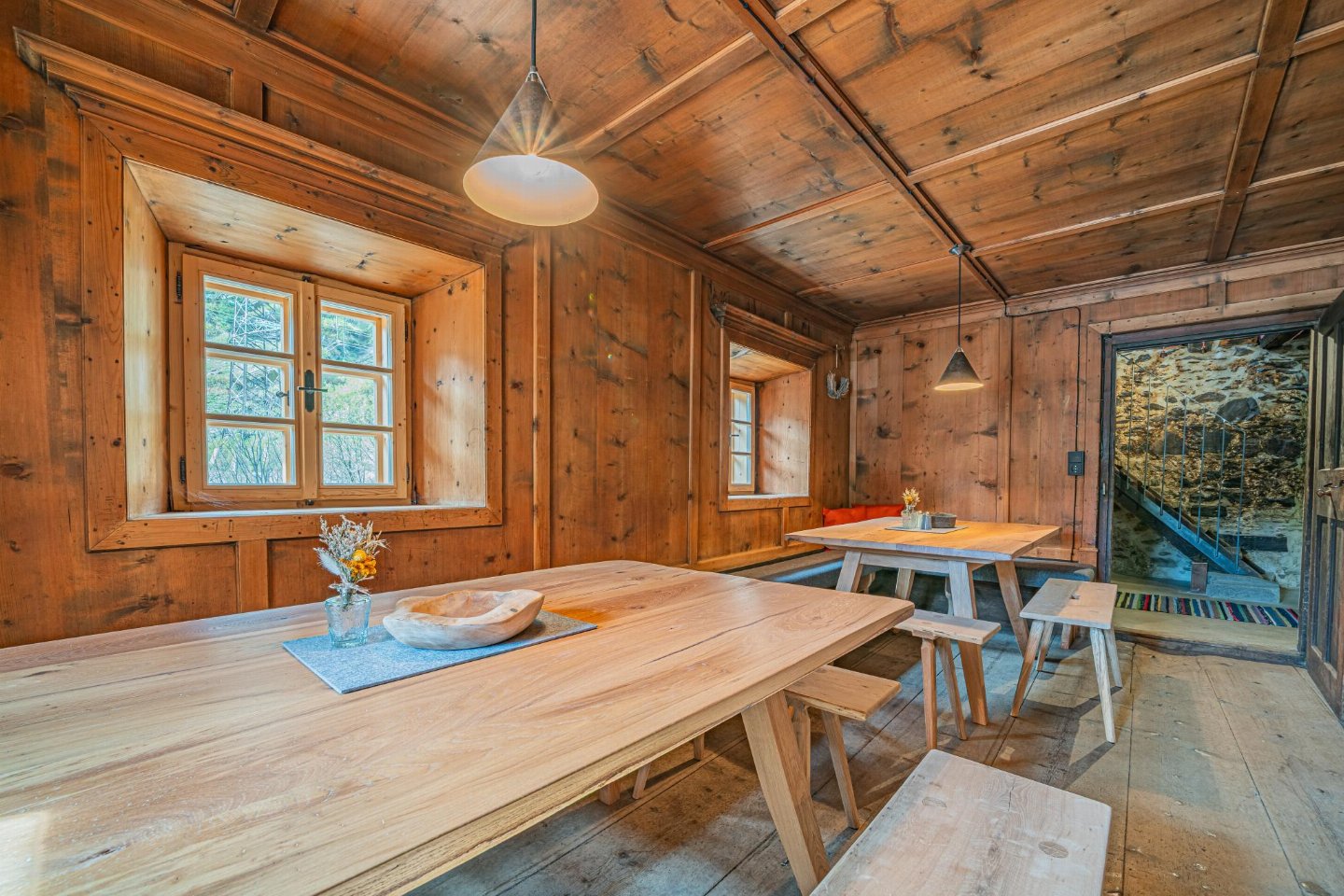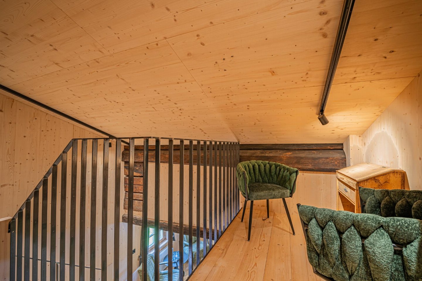Dit unieke chalet maakt indruk met zijn hoogwaardige inrichting, liefdevol bewaard gebleven bouwmateriaal en historische flair. Je voelt het speciale karakter van dit huis zodra je binnenkomt. Twee van de slaapkamers bevinden zich op open galerijen en zijn ideaal voor gezinnen met kinderen.