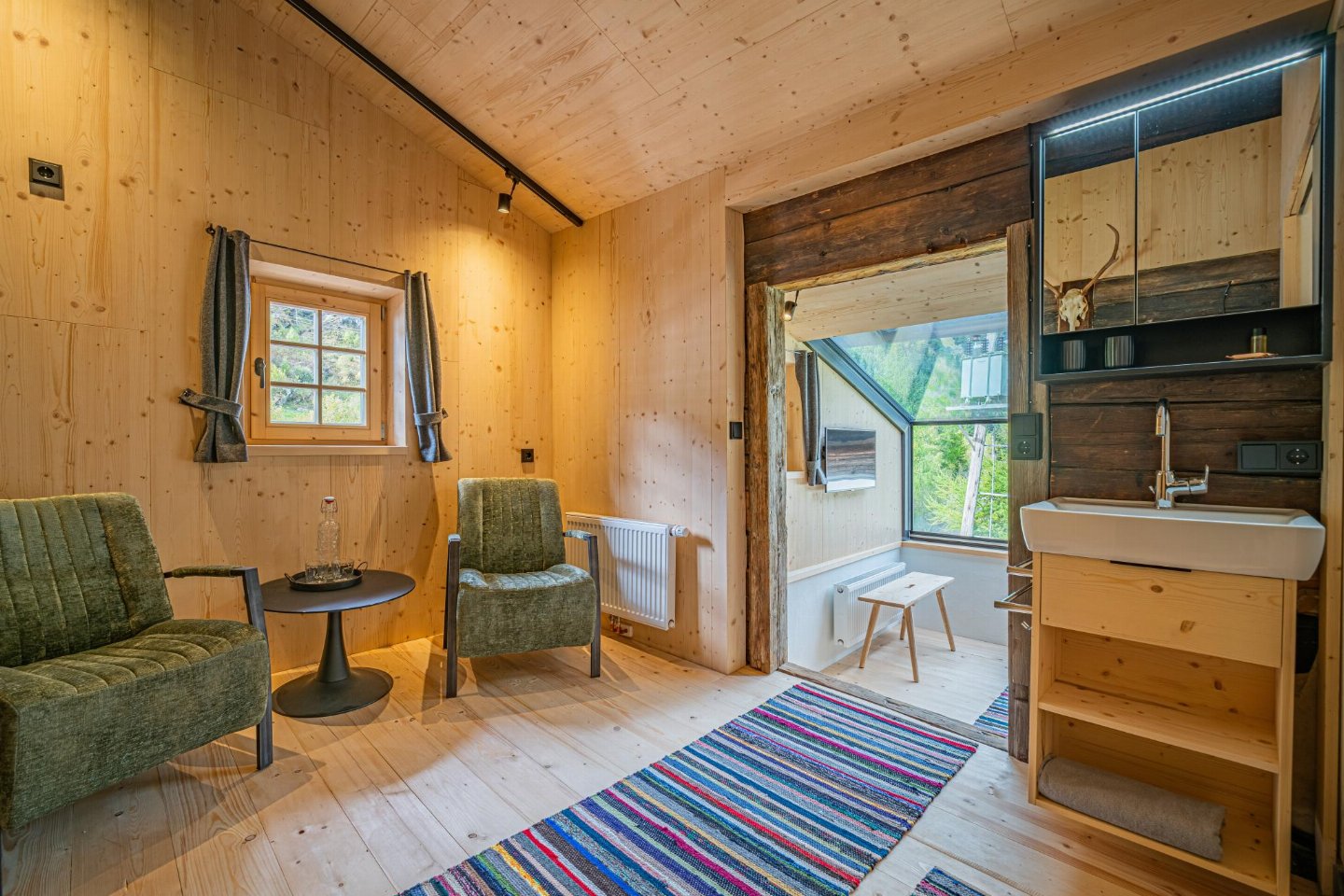 Dit unieke chalet maakt indruk met zijn hoogwaardige inrichting, liefdevol bewaard gebleven bouwmateriaal en historische flair. Je voelt het speciale karakter van dit huis zodra je binnenkomt. Twee van de slaapkamers bevinden zich op open galerijen en zijn ideaal voor gezinnen met kinderen. TV, wasmachine en een privéterras met eigen tuin zorgen voor maximaal comfort. Er is ook een gemeenschappelijke sauna - perfect voor een ontspannen vakantie.