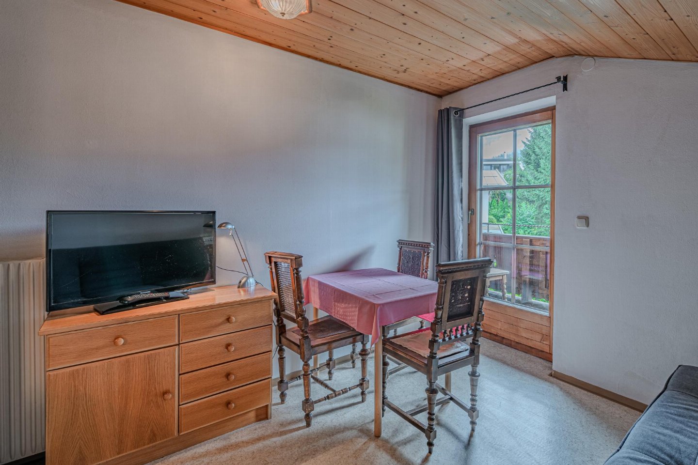 - woon/eetkamer (1-pers. slaapbank, TV, eettafel)