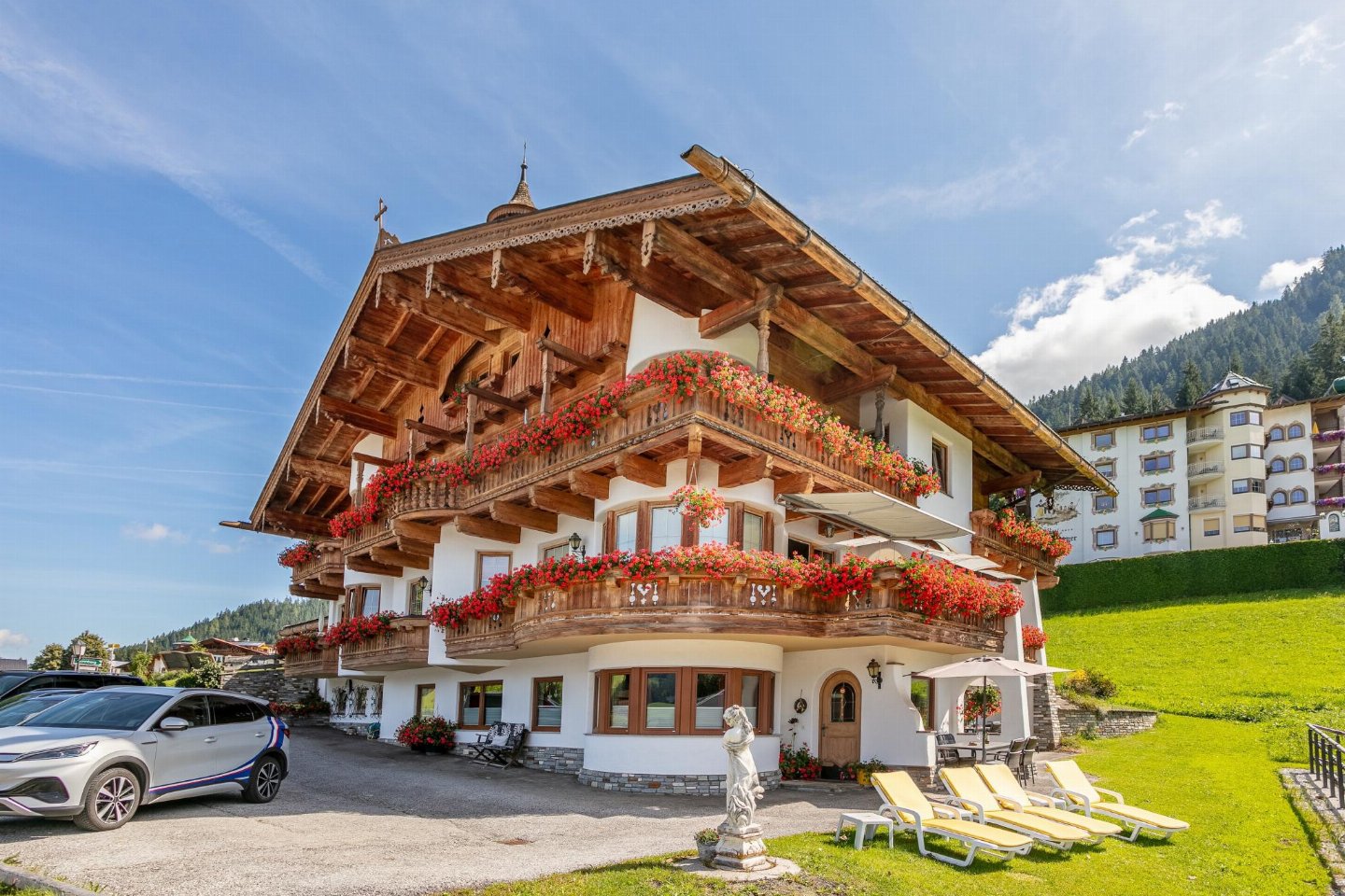 De appartementen liggen aan de rand van een schilderachtig bos in een rustig bergdorp op meer dan 1000 meter hoogte. Omgeven door zachte heuvels, geurende bossen en frisse berglucht ervaar je de Alpen in hun mooiste vorm. Direct voor de deur starten gevarieerde wandel- en mountainbikeroutes, zoals de prachtige tocht naar Horlerstiegl met een schitterend panoramisch uitzicht, die verder leidt naar Feldalphorn of Markbachjoch. Daar nodigt een gezellige houten berghut uit voor een pauze met traditionele snacks en verse melk.