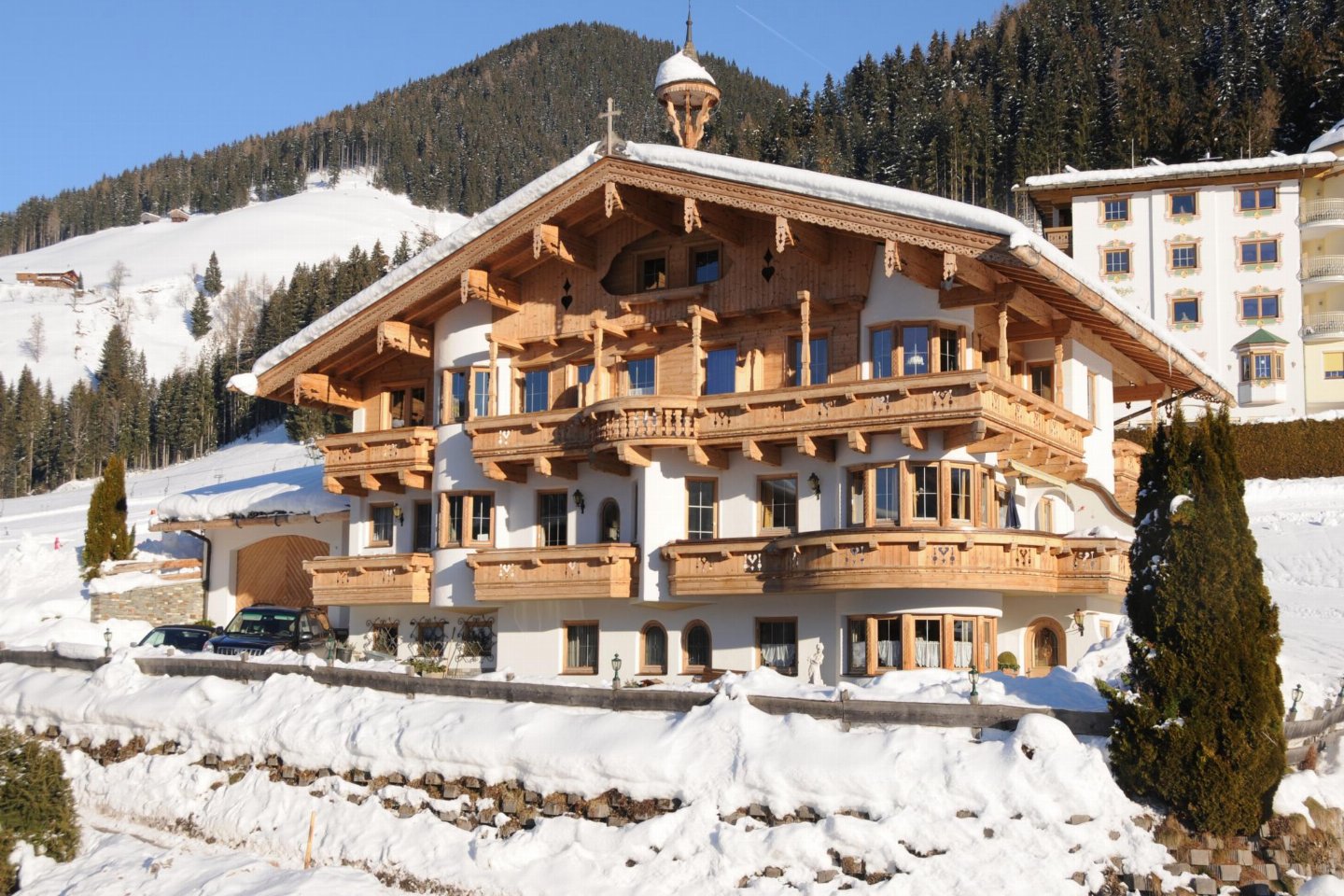 De twee exclusieve vakantiewoningen zijn rustig gelegen aan de rand van het bos in het idyllische Oberau, Wildschönau. Ruime slaapkamers, gezellige woonkamers met eethoek, volledig uitgeruste keukens en moderne badkamers bieden het hoogste comfort. De wellnessruimte met sauna en stoombad is beschikbaar op dinsdag en donderdag, de infraroodcabine dagelijks. Er zijn parkeerplaatsen direct naast het huis en de skibus stopt op slechts 10 meter afstand. Kan ook apart geboekt worden
