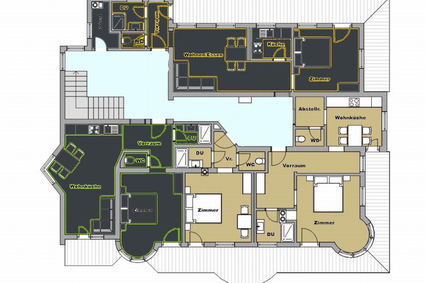 De twee exclusieve vakantiewoningen zijn rustig gelegen aan de rand van het bos in het idyllische Oberau, Wildschönau. Ruime slaapkamers, gezellige woonkamers met eethoek, volledig uitgeruste keukens en moderne badkamers bieden het hoogste comfort. slaapbank, TV, eettafel(4 personen)), slaapkamer(2-pers.